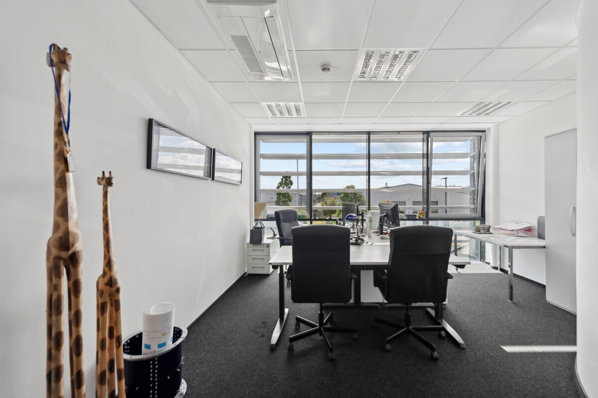 Ergänzt wird dies durch ca. 475 m² repräsentative Büroflächen, die ein angenehmes Arbeitsumfeld für Verwaltung und Organisation schaffen inklusive funktionaler Nebenflächen wie Pausenbereiche, Sanitär- und Umkleideräume, Technikräume sowie ein einladendes Foyer mit Fluren und Windfang.