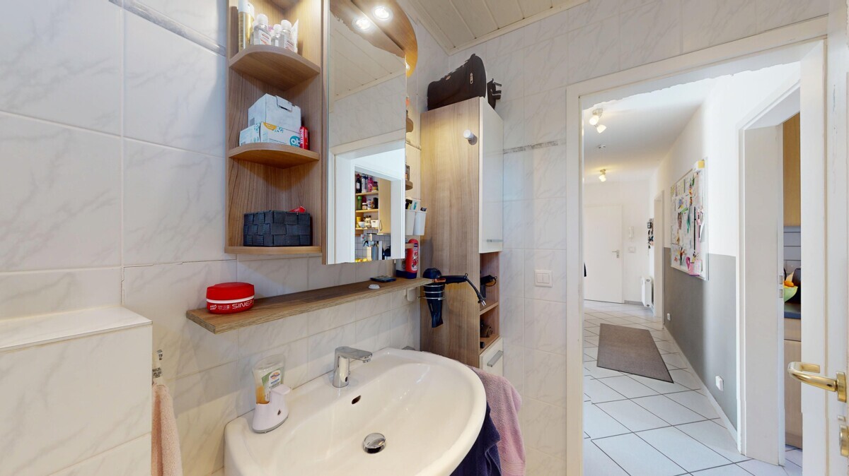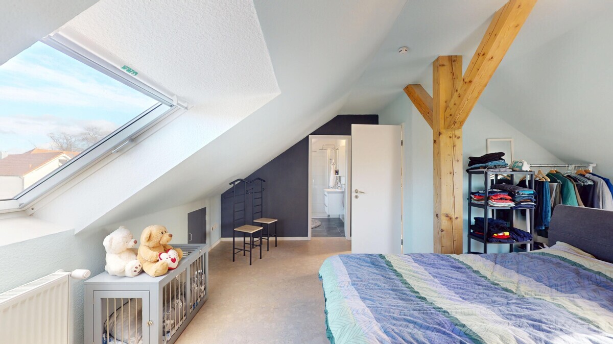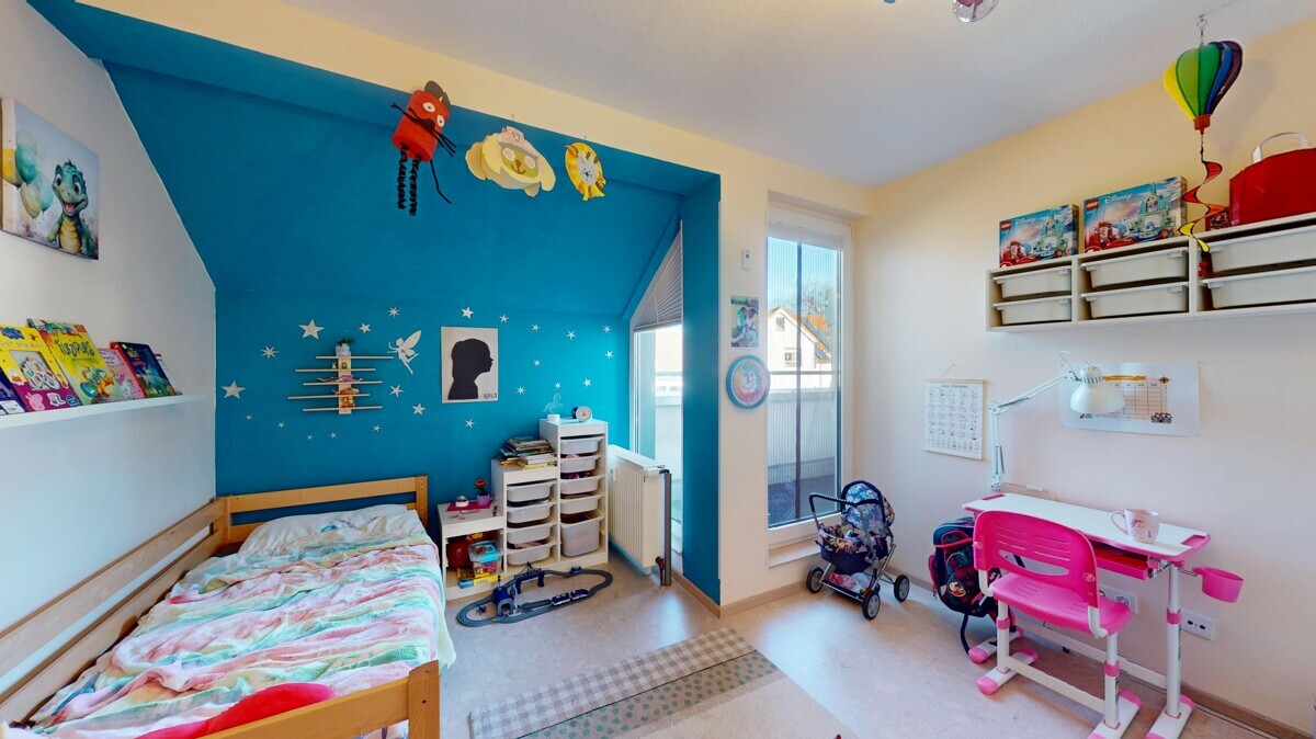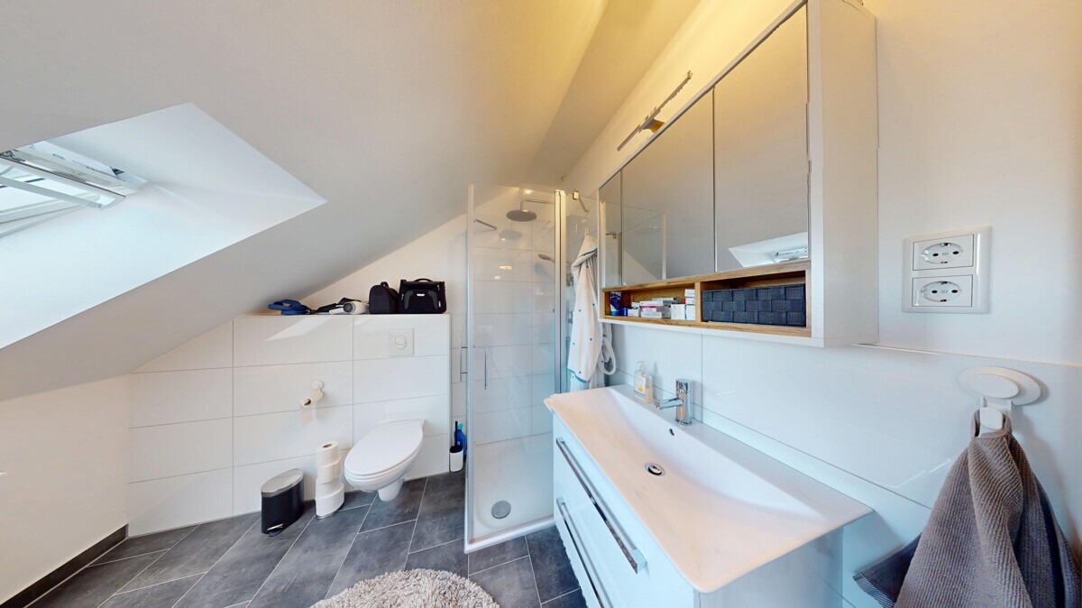 Insgesamt stehen drei Schlafzimmer zur Verfügung, die sich flexibel als Kinder-, Arbeits- oder Gästezimmer nutzen lassen. Zwei moderne Badezimmer – eines mit Dusche, das andere mit Badewanne – bieten zusätzlichen Komfort. Eine praktische Abstellkammer sorgt für zusätzlichen Stauraum.