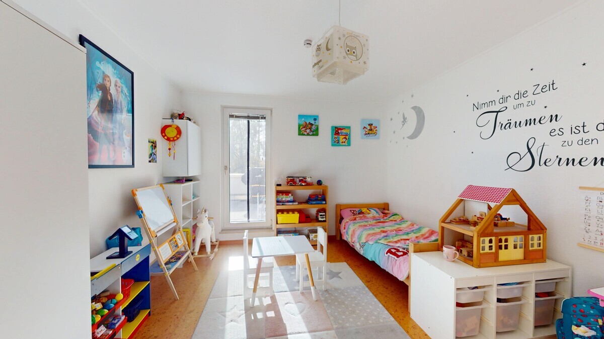 Insgesamt stehen drei Schlafzimmer zur Verfügung, die sich flexibel als Kinder-, Arbeits- oder Gästezimmer nutzen lassen. Zwei moderne Badezimmer – eines mit Dusche, das andere mit Badewanne – bieten zusätzlichen Komfort. Eine praktische Abstellkammer sorgt für zusätzlichen Stauraum.