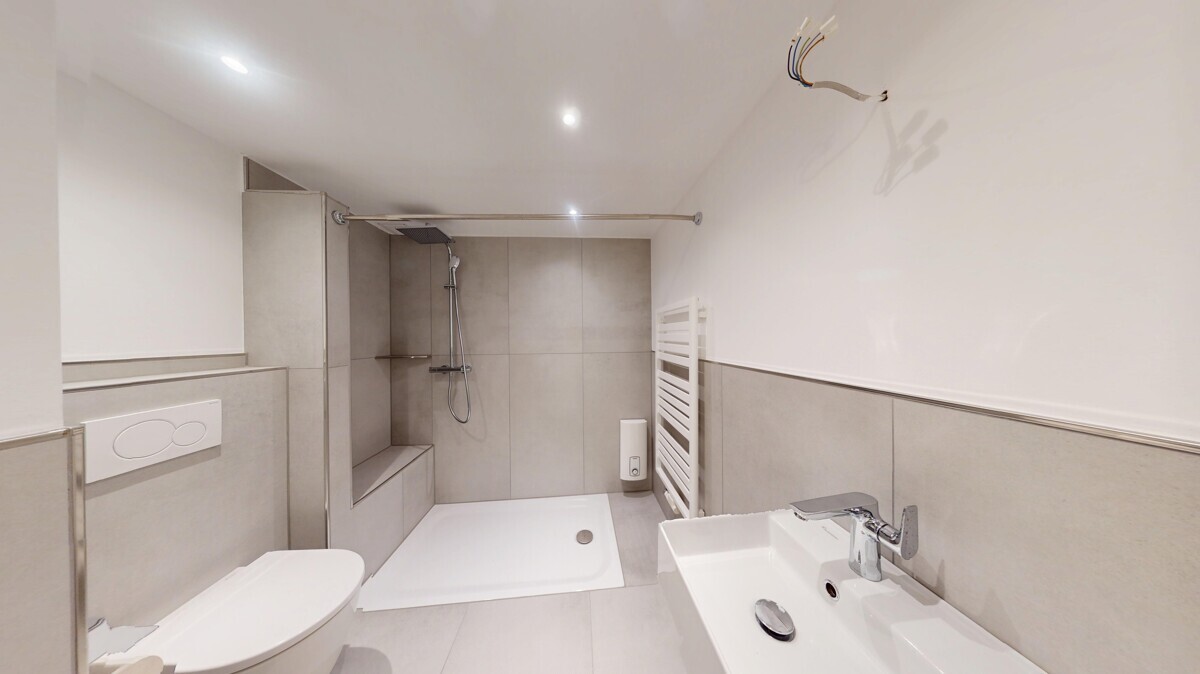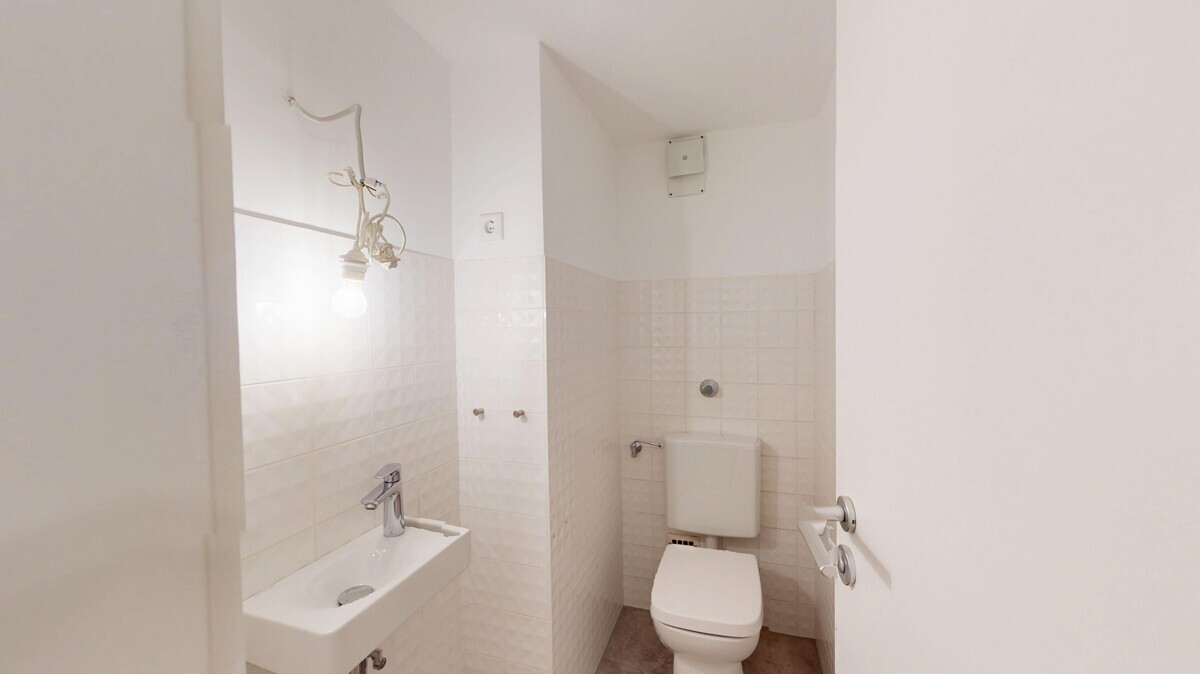 Die Wohnung wurde für die Vermietung vollständig renoviert und mit einer modernen Einbauküche inklusive Elektrogeräte, einem attraktiven Duschbad und einem ansprechenden Gäste-WC ausgestattet. Sie verfügt über einen hellen, geräumigen Wohnraum mit Zugang zum überdachten Sonnenbalkon mit Weitblick ins Grüne und eine Terrasse.