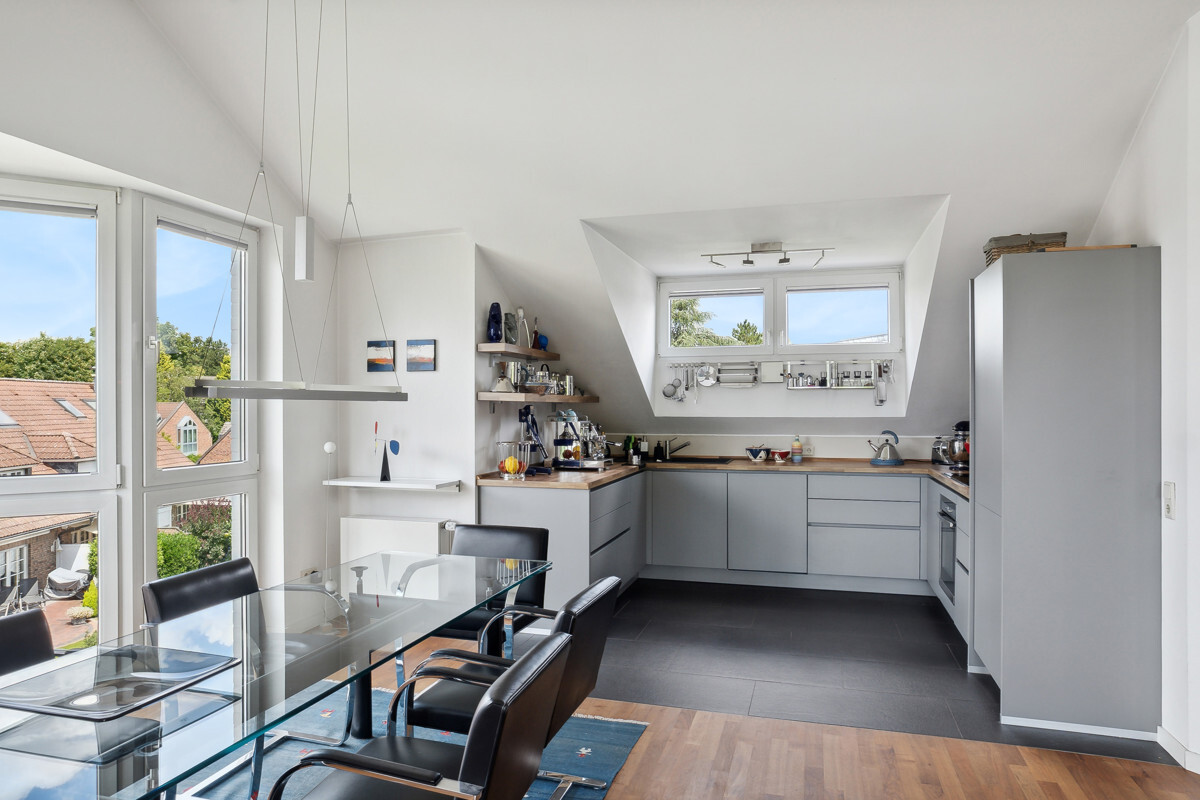 Hier erwartet Sie eine lichtdurchflutete Wohnung mit traumhafter Südwest-Dachterrasse und gemütlichem Parkettboden in einem sehr ansprechenden 8-Familienhaus in einer gepflegten Seitenstraße.