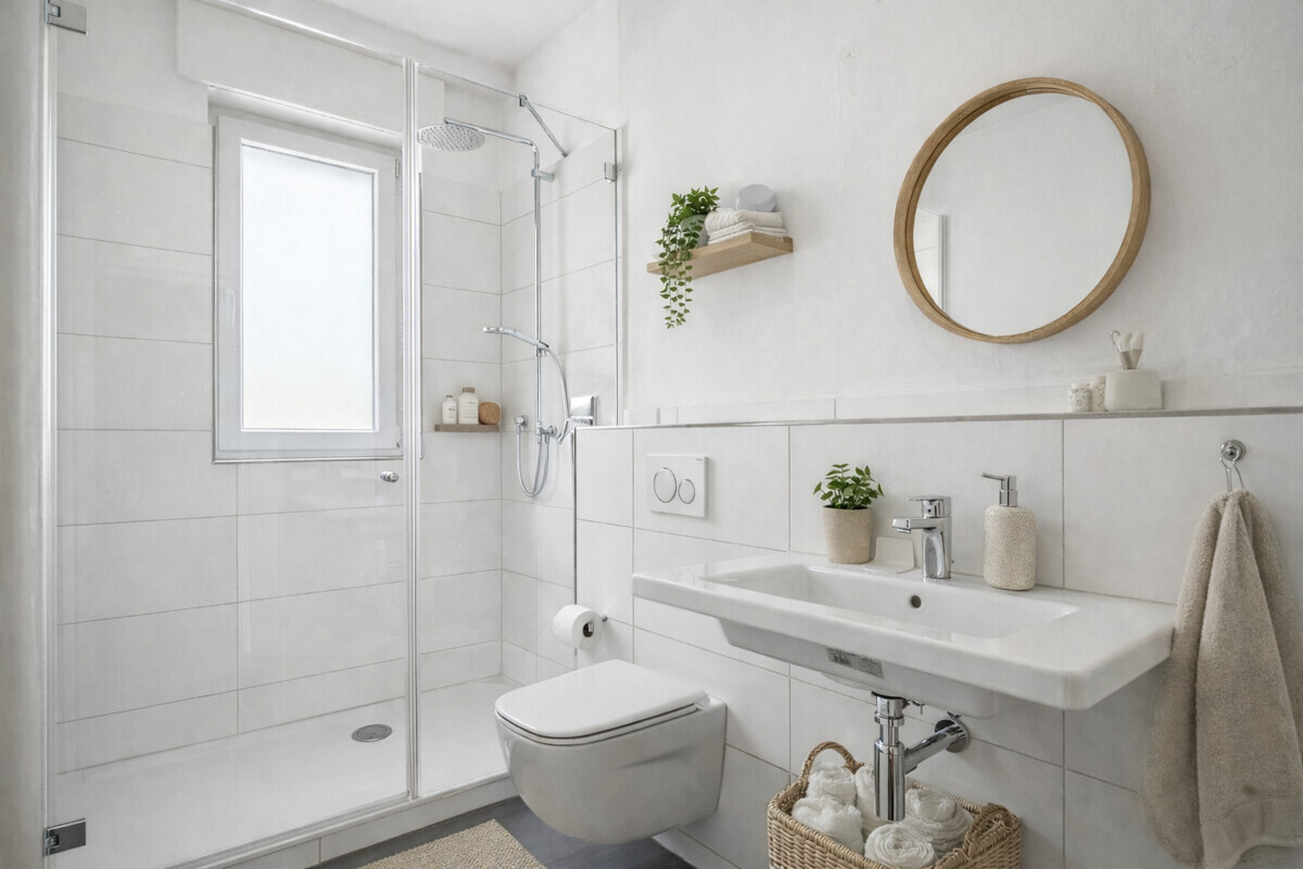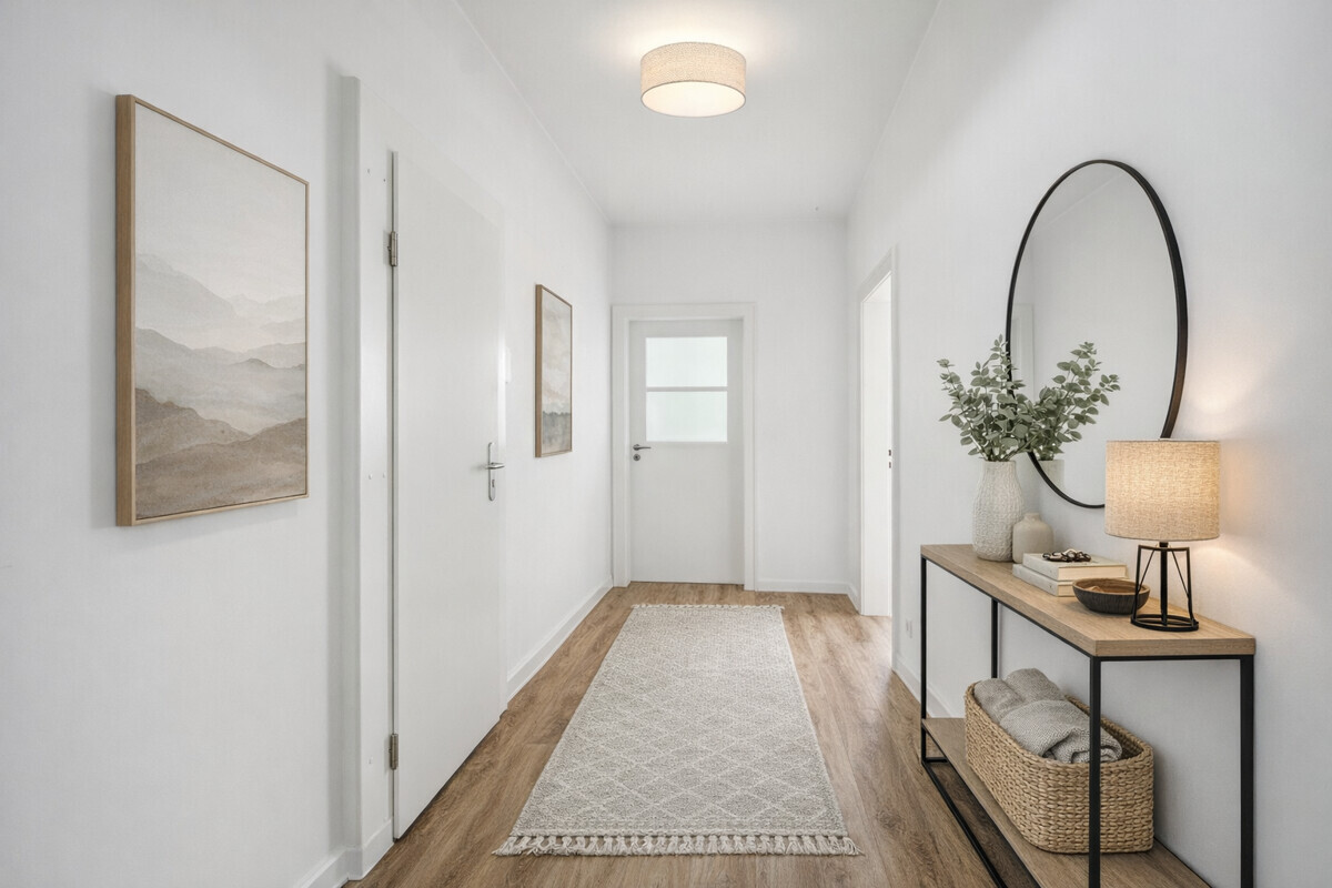 Wir bitten um Verständnis, dass wir aus Diskretionsgründen keine Fotos der vermieteten Wohnungen veröffentlichen. Die dargestellten Aufnahmen zeigen die derzeit freie Wohnung im 1. OG und wurden teilweise digital bearbeitet sowie mithilfe KI-gestützter Verfahren optimiert. Diese sind mit "Visualisierung" gekennzeichnet. Abweichungen vom Ist-Zustand sind möglich.