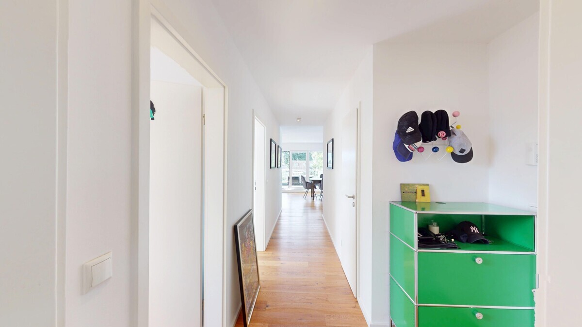 Die Wohnung ist mit einem hochwertigen Parkettboden in Eiche-Landhausdiele ausgestattet.