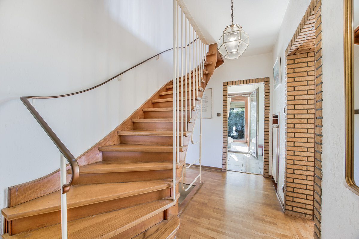 Im Erdgeschoss finden Sie das große, lichtdurchflutete Wohnzimmer, eine separater Küche und den angebauten Wintergarten mit Zugang in den Garten. Ein großzügiger Eingangsbereich mit Garderobe Gäste-WC sind ebenfalls vorhanden.