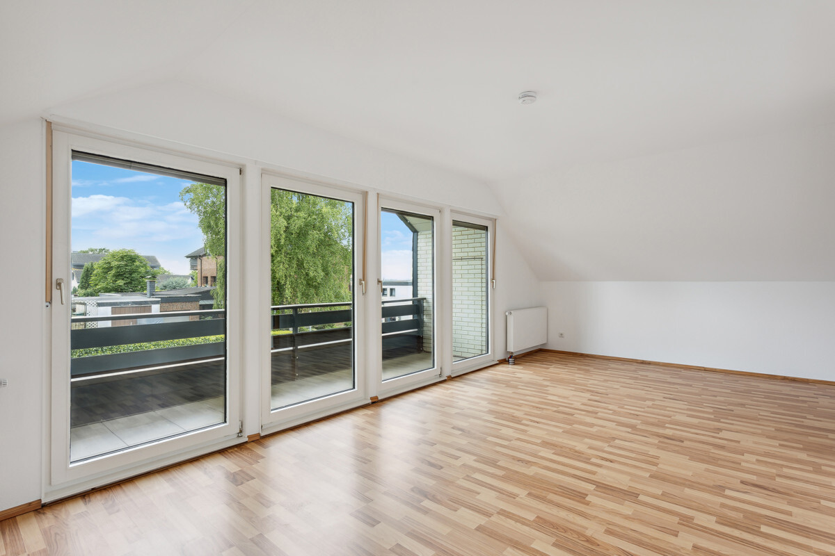 Im ersten Obergeschoss befindet sich eine großzügige (ca. 63 m²) 2-Zimmer-Wohnung mit Balkon. Die Wohnung im ersten Obergeschoss ist bereits renoviert. Sie verfügt über eine moderne Einbauküche und ein modernes Wannenbad. Die Böden in den Wohnräumen und der Diele sind mit Laminat in Holzoptik ausgestattet.