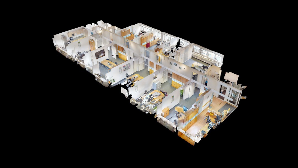 Derzeit weist das Büro einen klassischen Bürogrundriss auf und unterteilt sich wie folgt: