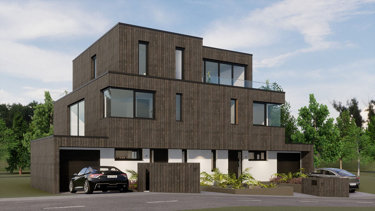 Das geplante Doppelhaus mit zwei Wohneinheiten/Doppelhaushälften entsteht an der Pfaffenhecke in dem Neubaugebiet Gippenstein-West im wunderschönen Much.