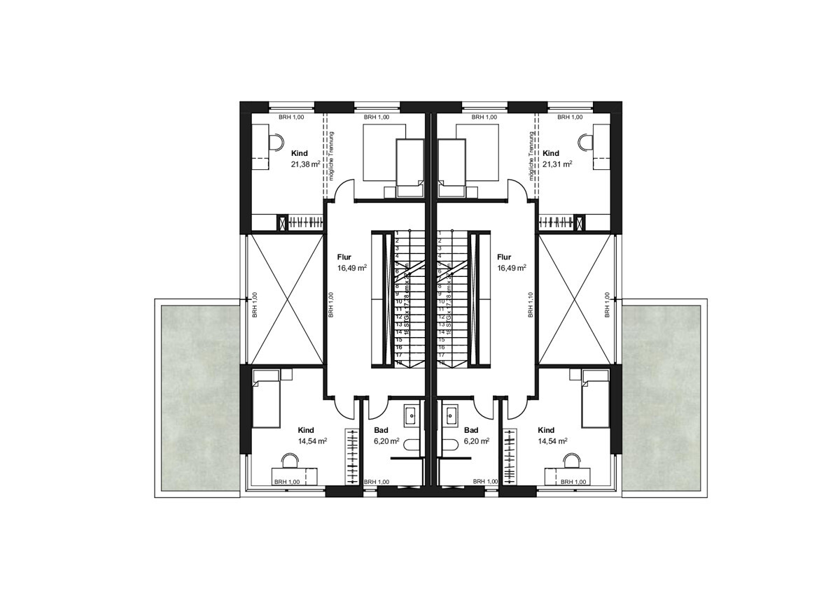 Beide Wohneinheiten, mit einer Wohnfläche von jeweils knapp 180 m², verfügen über 3 Geschosse exklusiv des Kellergeschosses und bieten somit ausreichend Platz, um sich zu entfalten.