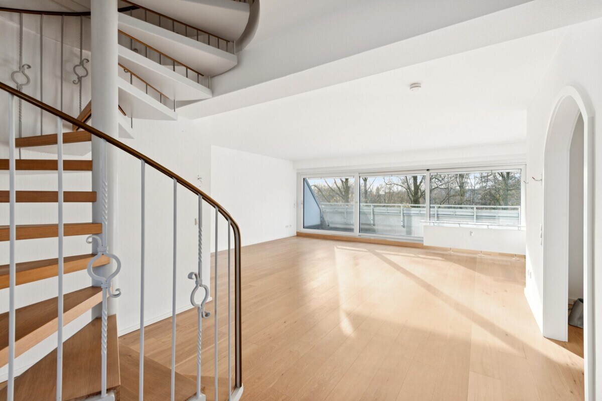 Maisonette-Dachgeschosswohnung in Toplage Düsseldorfs – mit Balkon und Blick auf den Ostpark