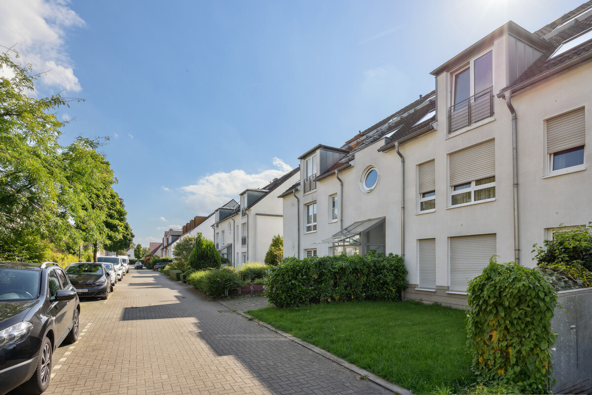 Die angebotene Wohnung befindet sich im beliebten Stadtteil Düsseldorf Unterrath. Die Nachbarbebauung ist geprägt von modernen Einfamilien- und Mehrfamilienhäusern mit schön angelegten Vorgärten und jüngerem Baumbestand. Die Straße ist einspurig und wenig befahren.