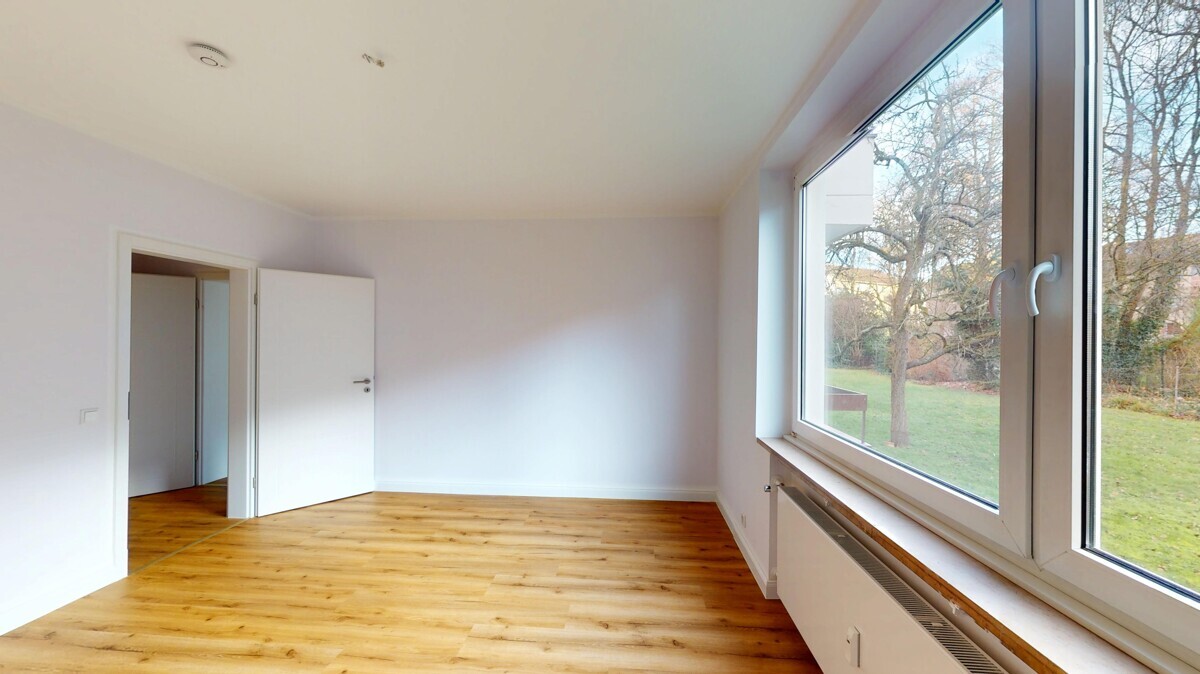 Das Schlafzimmer verfügt über eine angenehme Größe und bietet ausreichend Stellfläche für Bett und Kleiderschrank. Das vollständig modernisierte Duschbad präsentiert sich in einem sehr gepflegten, neuwertigen Zustand mit zeitgemäßer Ausstattung. Eine einladende Diele verbindet alle Räume optimal.