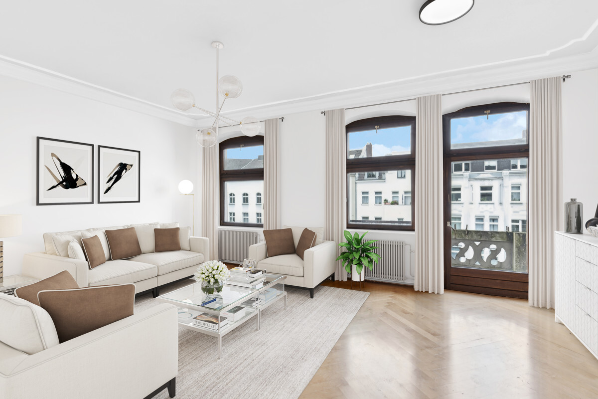 Oberkassel: Lichtdurchflutete Altbauwohnung in Rheinnähe