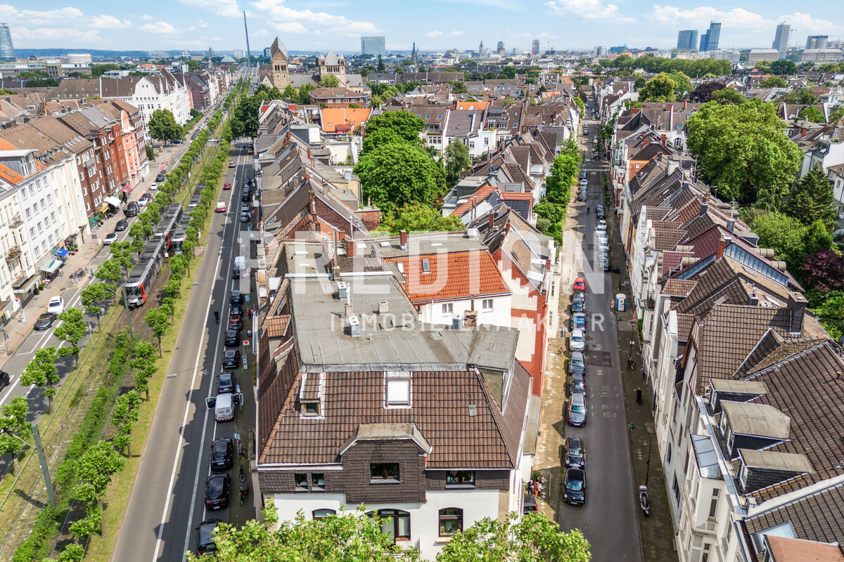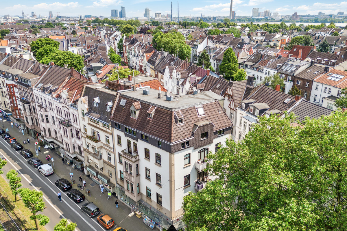 Der Stadtteil Oberkassel mit seinem ganz eigenen Flair gehört zu den besten Lagen Düsseldorfs. Viele wunderschöne Hausfassaden aus dem Jugendstil und der Gründerzeit, gepaart mit ansprechenden kleinen Geschäften mit hochwertigem Sortiment und einladenden Restaurants, machen den besonderen Charme dieses Stadtteils aus. Zudem befinden sich die weitläufigen Rheinauen in fußläufiger Nähe, die zum Flanieren und Joggen einladen.