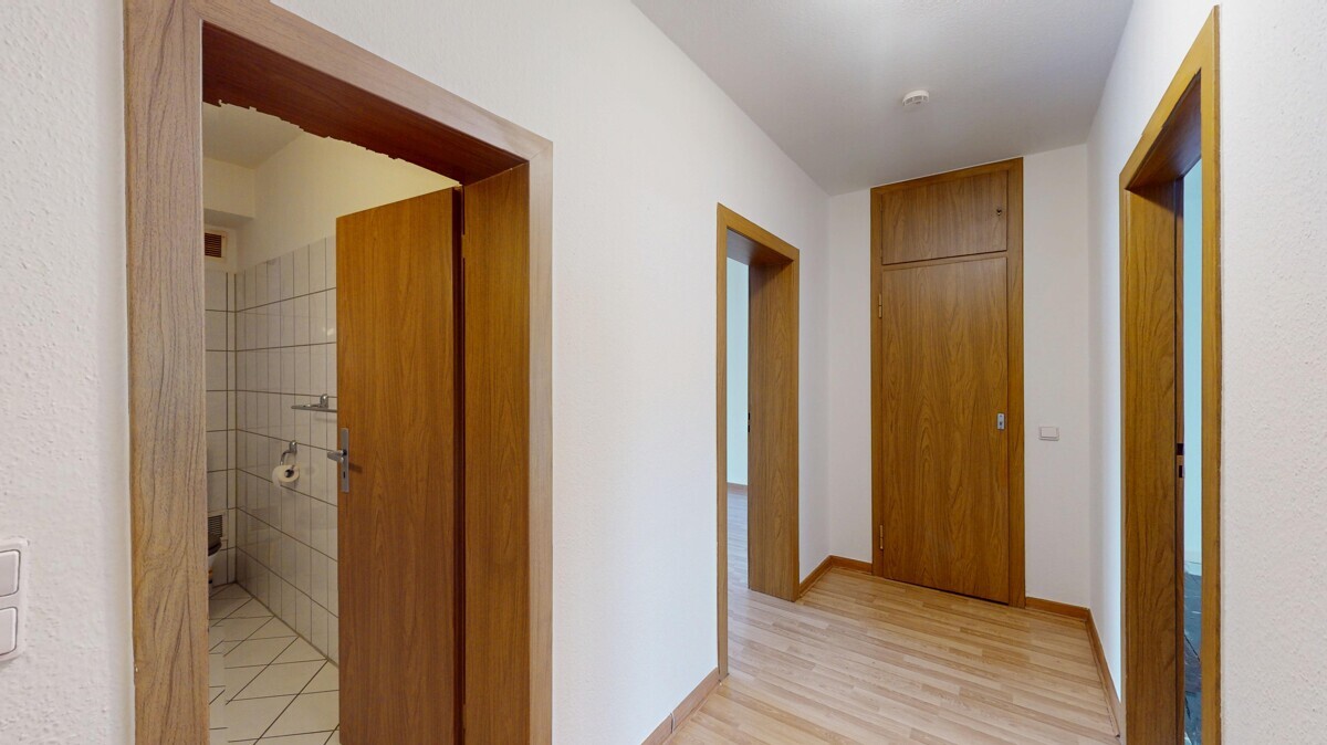 Die Wohnung ist größtenteils mit einem ansprechenden Boden in Holzoptik ausgestattet. Der Teppichboden im Schlafzimmer wurde vom Vormieter entfernt, sodass hier nach eigenen Vorstellungen ein neuer Bodenbelag verlegt werden kann. Die Übernahme der Kosten für das Material im normalen Rahmen wird vom Vermieter übernommen.